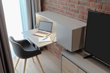 Závěsný stolek je vhodným řešením, když není dostatek prostoru pro klasický psací stůl. Je v něm zabudováno LED osvětlení a zásuvka. V tomto výklopném stolku, na který lze pohodlně umístit například notebook, je zabudováno LED osvětlení a zásuvka. Na pravé straně je skříňka pro ukládání dokumentů a drobných, například kancelářských předmětů.