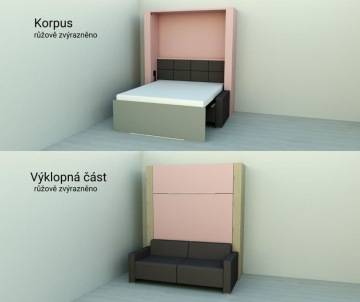 Sklopná postel se v základní podobě skládá z korpusu a výklopné části.